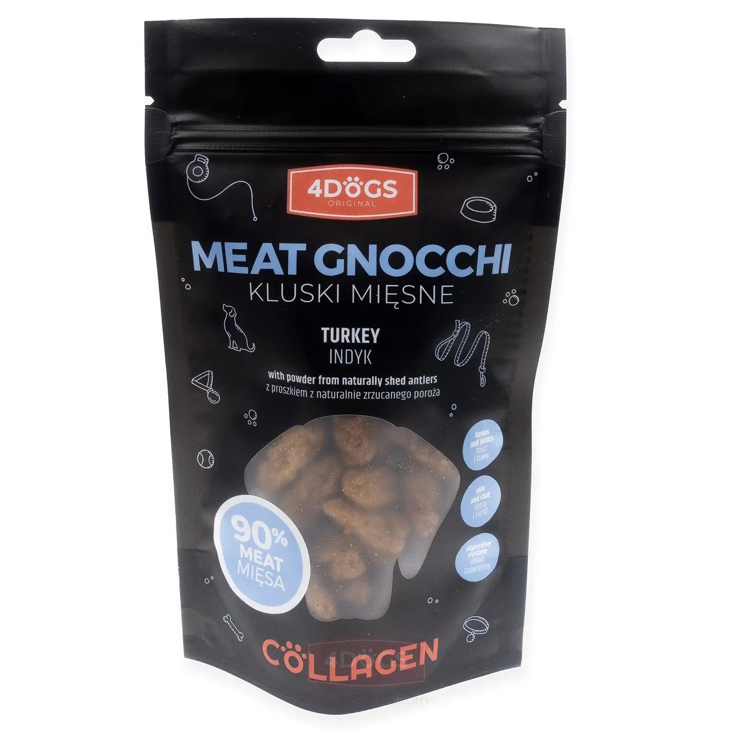 Mäsové guľky s morčacím mäsom kombinujú lahodnú chuť hydiny s množstvom živín. Potešia nielen chuťové poháriky vášho domáceho maznáčika, ale tiež podporia jeho zdravie a pohodu. 4DOGS je jediným výrobcom na trhu, ktorý do maškŕt pridáva 5 % jeleních parohov. Táto jedinečná zložka je skutočným pokladom zdravotných výhod pre vášho psa, zabezpečuje krásnu srsť, zdravú pokožku a zdravé kĺby.