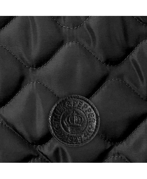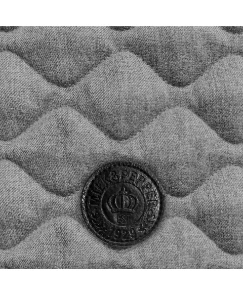 • Jedna strana z melírovanej sivej prešívanej vlnenej látky (vodoodpudivá) , druhá strana z vodeodolného prešívaného polyesteru čiernej farby