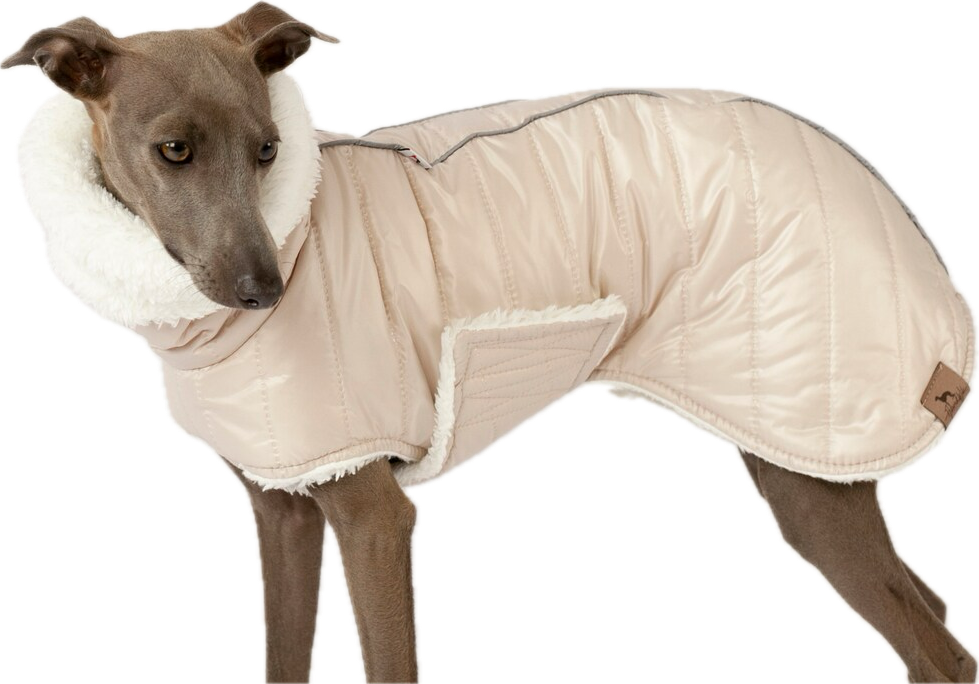 • Pohodlná a dobre priliehajúca k telu psa - navrhnutá s ohľadom na štíhlu postavu talianskeho chrta a vhippeta, bunda dokonale sadne na telo psa bez toho, aby ho obmedzovala v pohybe.
