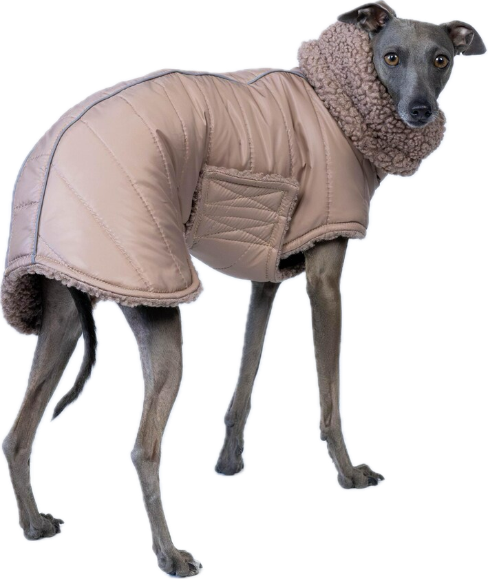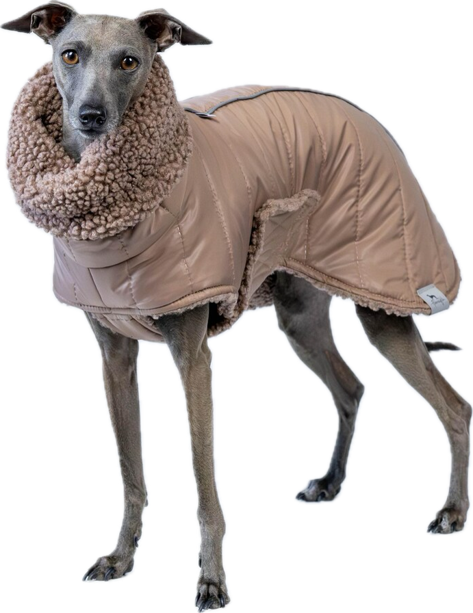 - Pohodlná a dobre priliehajúca k telu psa - navrhnutá s ohľadom na štíhlu postavu talianskeho chrta a vhippeta, bunda dokonale sadne na telo psa bez toho, aby ho obmedzovala v pohybe.